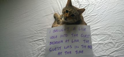I mentioned that Schrodi has suddenly developed a liking for bringing in field mice. Well unlike his usual short-tailed voles they are the proverbial bugger to catch (they almost seem to be able to teleport from one side of the room to another just when you think you have them cornered). The other day he […]