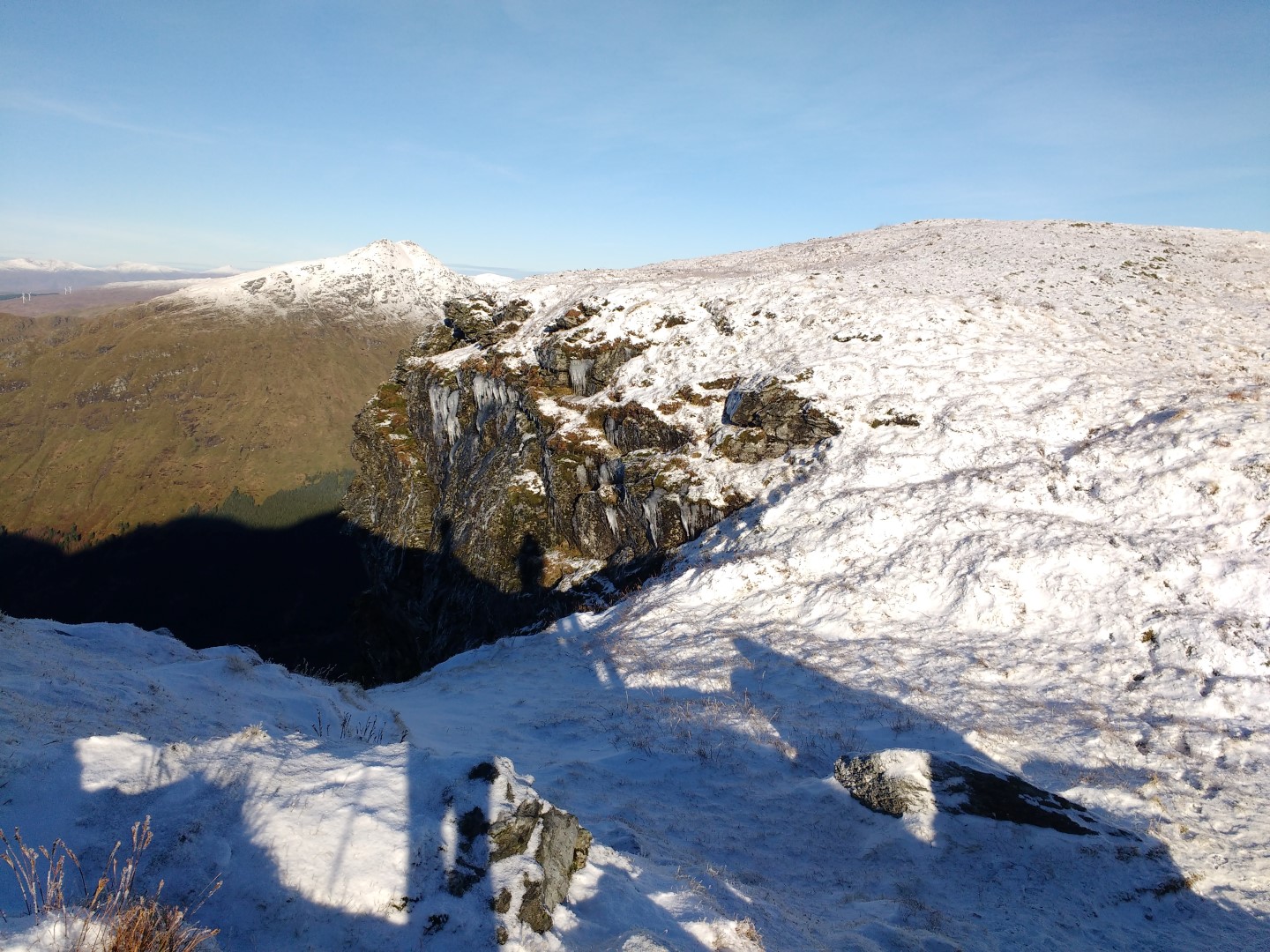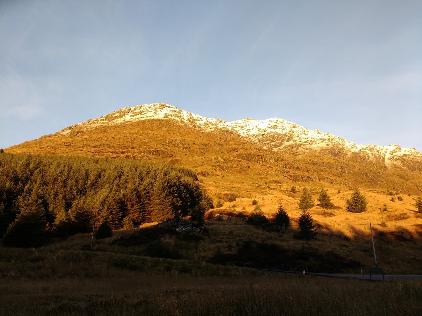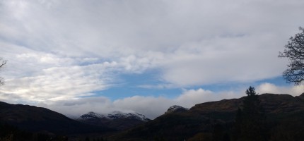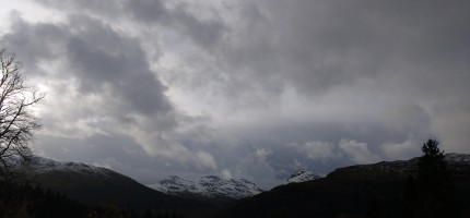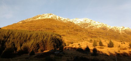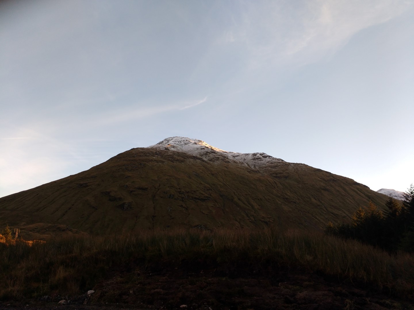Hard to believe it, but after the mild weather over the last few weeks, today the winter has finally arrived. Beinn Bheula in the photo is white with snow.