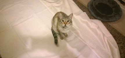 I went to make some new curtains for R today. Schrodi was sound to the world on a chair, so I laid out the material to cut on the lounge floor. Literally one second later he was wide awake and on the material giving me all his assistance. Probably just as well I had him […]