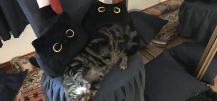 Here is Saphy with Amber’s two clones, Casper and Bumble (ABC for Amber, Bumble and Casper). Saphy loves jumping on things and then rolling around chasing her tail until she inevitably falls off. She is not very well co-ordinated and I sometimes suspect she may have a mild case of “wobbly cat syndrome” – but […]