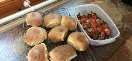 This made a very tasty lunch which was ready from scratch in an hour. I made some home made rolls using my super-fast microwave method – and we had them with some baked peppers.   Normally I do a fancy stuffing, but on this occasion I just cut each pepper in half and took the seeds […]