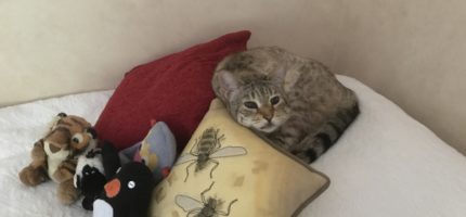N and J stayed over at the weekend.  Schrodi made sure to get both of their beds ready for them. Unlike when my Mum came to stay around this time last year though, he didn’t favour them with any rodents during the night.