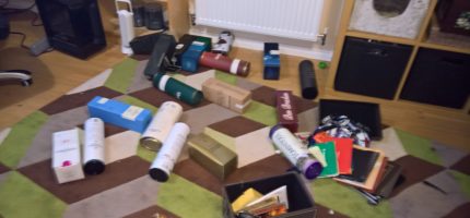 R got me some lovely romantic Valentine’s Day presents. First I got a box filled with red heart balloons (and “I love you” at the bottom of the box) and then later in the day, a lovely bunch of red roses and some very moreish chocolates. Here they all are on the mantelpiece – hopefully […]