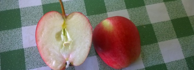 One of the apple trees in our garden is loaded with fruit which look ready, so this afternoon I picked one to try it. Not sure what variety it is but it has a crisp white flesh and a red skin, and it was in fact ready. I cut it in half and gave half […]