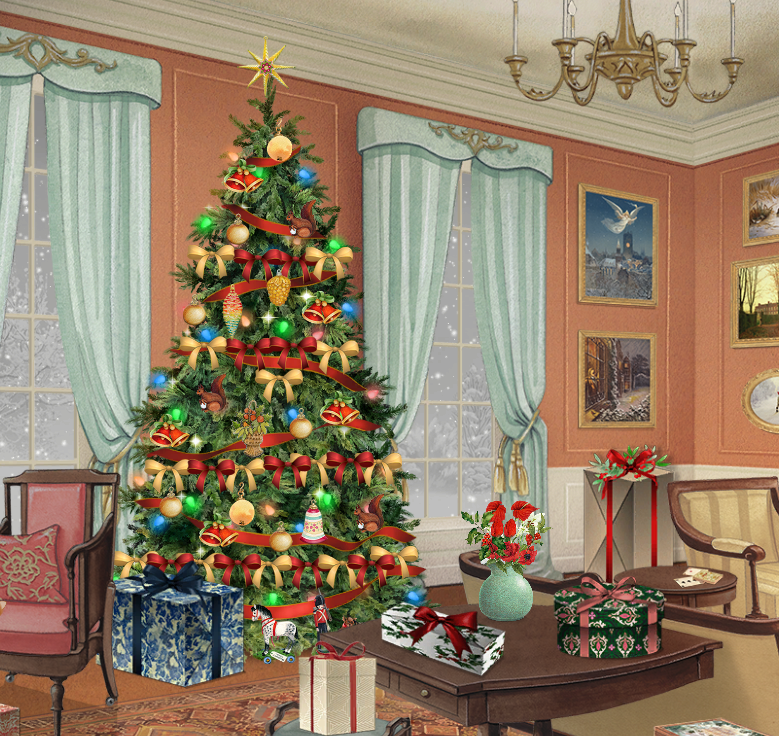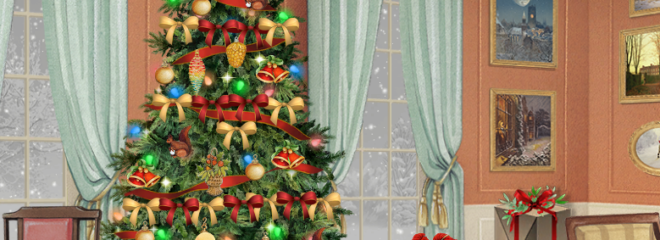 This year the theme is the Edwardian Christmas House, and two of the activities this year so far were making a floral arrangement and decorating the Christmas tree – once you have completed them, your finished results show up in the drawing room (and sometimes in the windows of the house itself). The above picture shows my efforts.