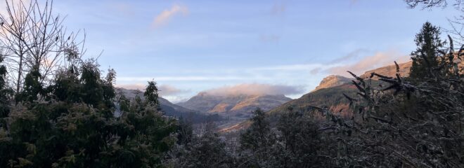 Bitterly cold today – it was -4C when taking photo, but some lovely views from the front door.
