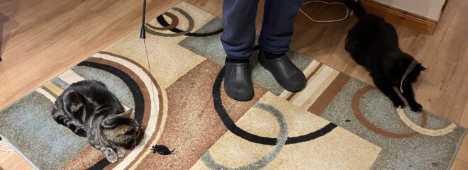 Since we acquired him (or vice versa), Lucky has never been known to play. We’ve tried him with all sorts of toys, but he never seemed to get the hang of it, and I have a theory about this.