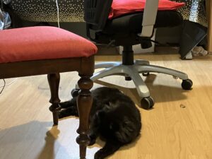 Lucky and the ladies are still not best friends, and Saphy in particular does not appreciate his attempts to chase her and play with her. I think Lucky is a very young cat (in spite of his size), and hopefully he will grow out of his over enthusiasm.