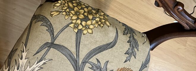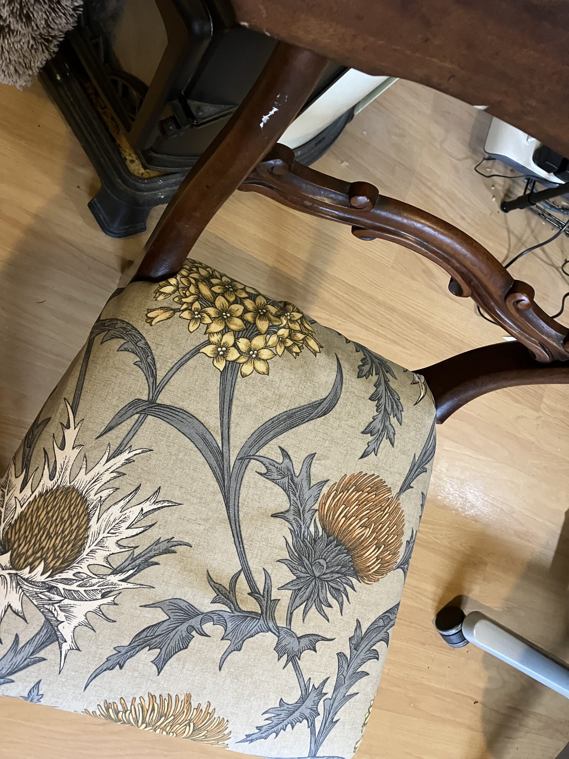 The seat covers were a bit knackered though, so I reupholstered them in some rather nice material with thistles and daffodils on it (not sure why no roses or shamrocks though).