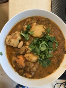 Last time I was semi-incapacitated (with my arm in a sling), we had to live on a combination of R’s cooking and ready meals. Now don’t get me wrong – within his area of competency, R is a good cook and I wouldn’t knock him for trying, but his range is very limited. Also it doesn’t seem fair that R should end up with all the cooking as well as his demanded day job. Inevitably there are going to be parts of the household tasks he has to do for a while, but I am trying to minimize these. I don’t mind M&S meals, but we can’t easily get them here, and the ones from ASDA/Morrisons are frankly nasty, plus packed with salt and ultra-processed ingredients.
