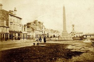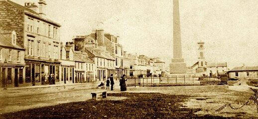 This is the old photo – cleaned up a bit from the original.  I think it is c. 1880 to 1890.  It can’t be before 1873 because that was when the Henry Bell Monument was built, or much after 1890 because there are no street lights, and in a later photo I have from 1902 there are what I presume to be gas lights.