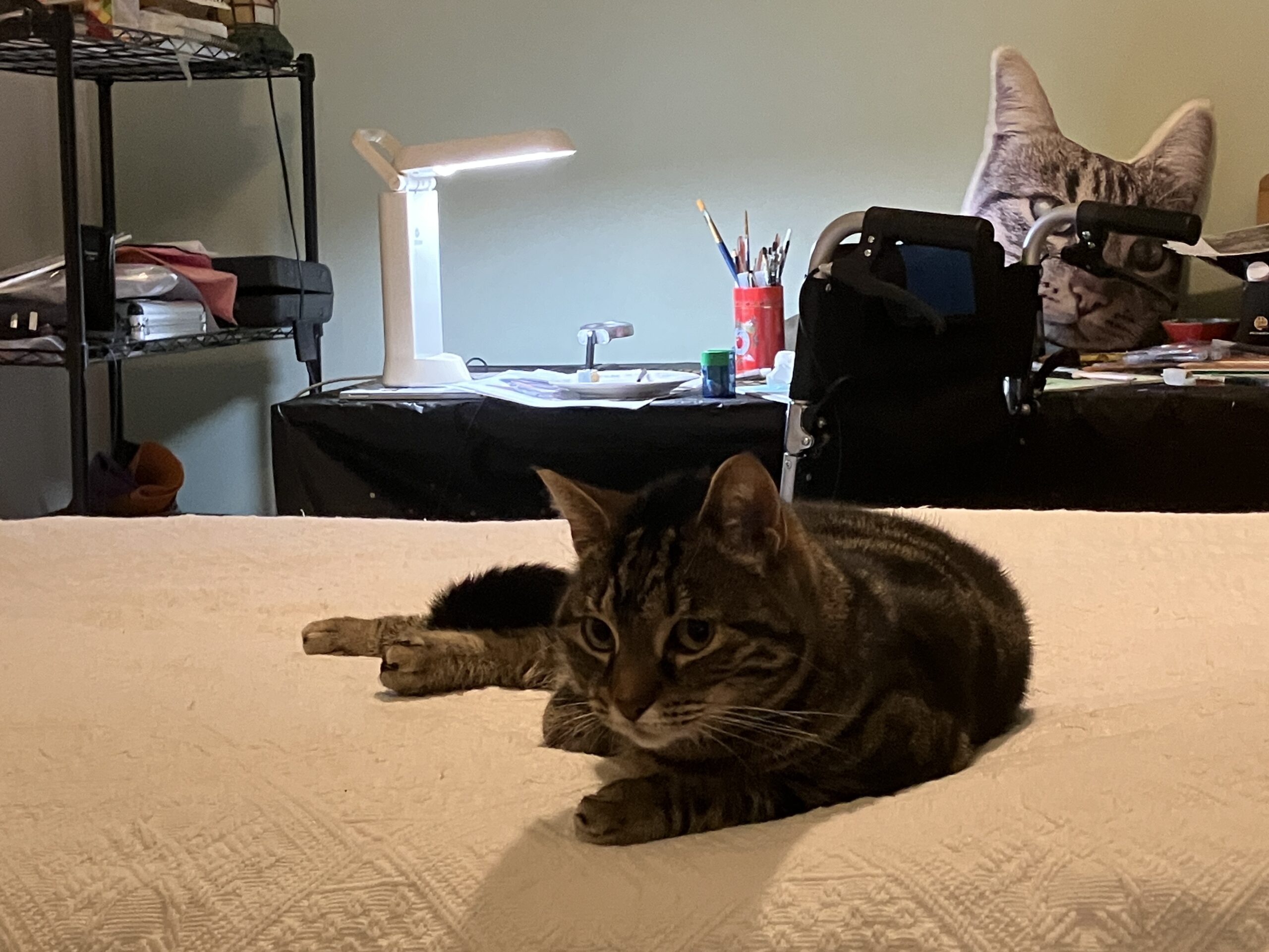So either she is better at small gaps than I had thought, or she had been hiding in the room all night.