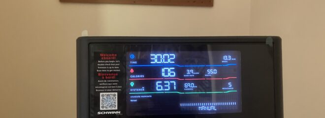 It is good fun and I am not having the trouble with keeping my Aircast boot on the pedal that I thought I might have. I’m not sure if it would be alright to take it off while I exercise, but I am erring on the side of caution and keeping it on. I listen to an audio book while I am “cycling” but I am thinking of trying videos of great cycle rides – there is a slot for a tablet on the machine which the Surface should fit into nicely.