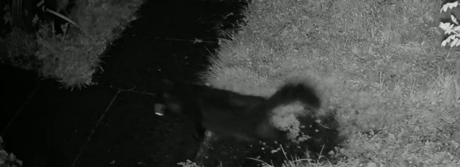 We have long known that Lucky was a hunter, otherwise he would have had no way of feeding himself in his feral days. But now we have evidence. In the first video, he is staking out the feeding area, and you will see a mouse shoot out, take a nut and disappear into the bushes. But after five minutes more patient waiting, another one was not so fortunate. He pounces and you see him stalking off, prey in his jaws.