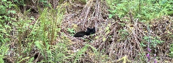 Lucky is quite friendly now, and he is a good looking cat, but he is never going to be anything other than semi-domesticated. We used to call cats like him “barn cats” – they live largely on farms and will come inside at a pinch, but are really wild animals who prefer to be free and catch their own food. I am glad he is happy with the life he has chosen and I expect to see much more of him come winter.