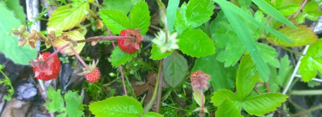 We used to have a big patch of wild strawberries in the garden but they died off a few years ago. This week I noticed that a new patch had appeared – and yesterday I collected the first few to have ripened. They were pretty good, but I’ll be honest here (though whispering) not as good as the Scottish strawberries in the shops at this time of year. During the winter all strawberries are rubbish – the fresh imported ones taste like turnips, and strawberries neither can nor freeze well.
