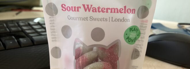 Yum I thought – I like sour sweets and I like watermelon, and these are gourmet plant based sweets with “No Nasties. All Good” on the back of the packet. Aye right – also on the back of the packet is a list of chemical sounding ingredients as long as your arm. And they don’t taste good either.