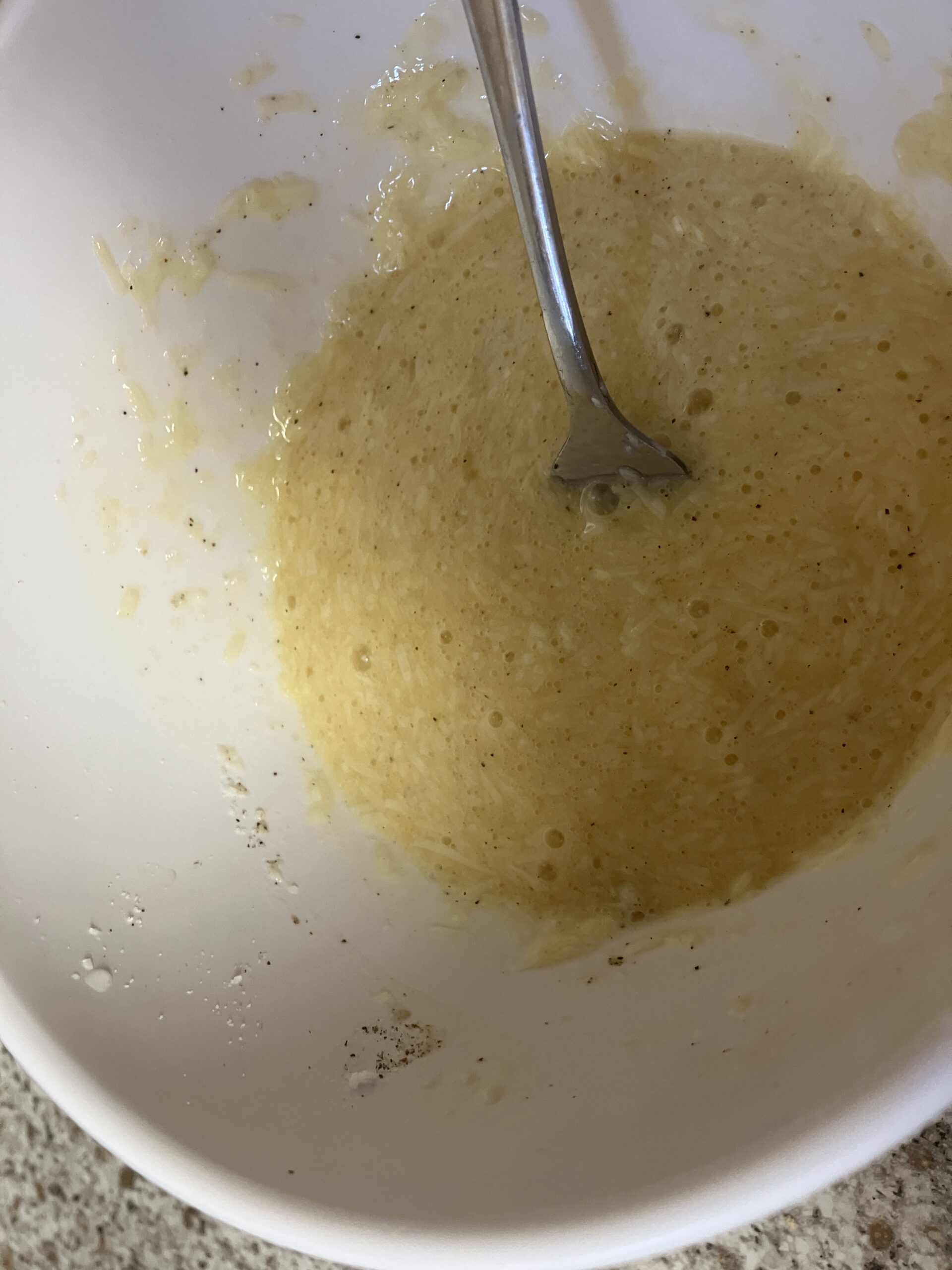 Things I noted were a) no cream, onions, mushrooms, garlic or oil b) using the whole egg rather than just the yokes (and that’s definitely no yolk)