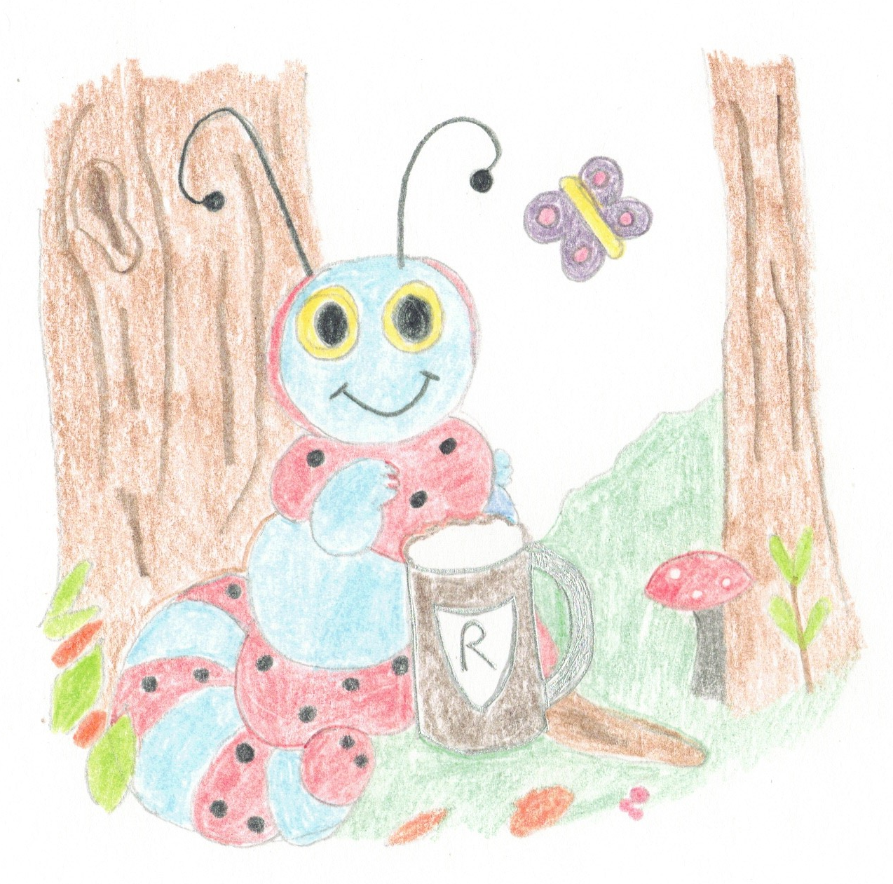 Here is the bug enjoying a pint of beer after his adventures in the deep dark wood.
