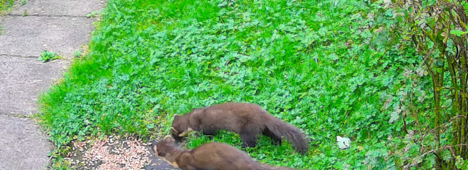 Not one but two pine martens feeding on the nuts this morning. By the look of them they are probably a mother and one of this year’s offspring, as one of them is notably smaller than the other.