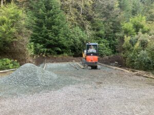 After I wrote that I thought “Fnarr, fnarr” which if any one remembers “Viz” which was the catch phrase for the immortal “Finbar Saunders and his double entendres” . The hole in the ground I am talking about now is the excavation work we have been having done for our garage base.