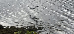 Walked to Inverlounin House this morning. This is as far as you can get along the “coast road” – Fitbit says 4.71 miles return to Donich Lodge, but Google Earth says 4.2 miles (like it or not I suspect the Google reading is correct). On the way we saw a nice heron taking off as we startled it.