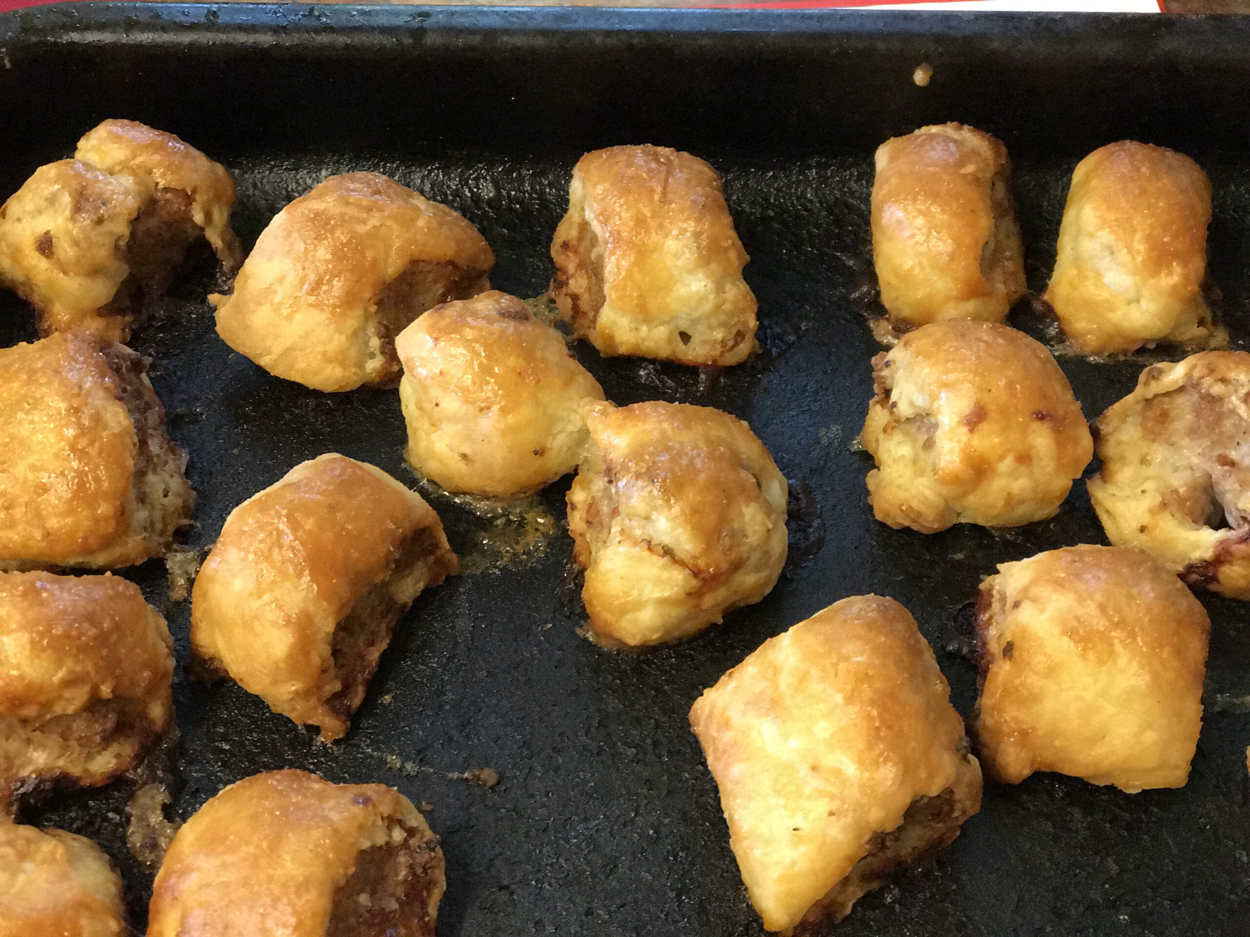 I felt like doing some baking today, so I rustled up some sausage rolls.  I am not ashamed to admit that I used shop bought puff pastry, because although I am a big fan of homemade things, and also can make it myself successfully (honest I can), it is way more trouble than it is worth.  The shop bought stuff is perfectly fine and doesn’t involve hanging around for hours taking it in and out of the fridge for resting.