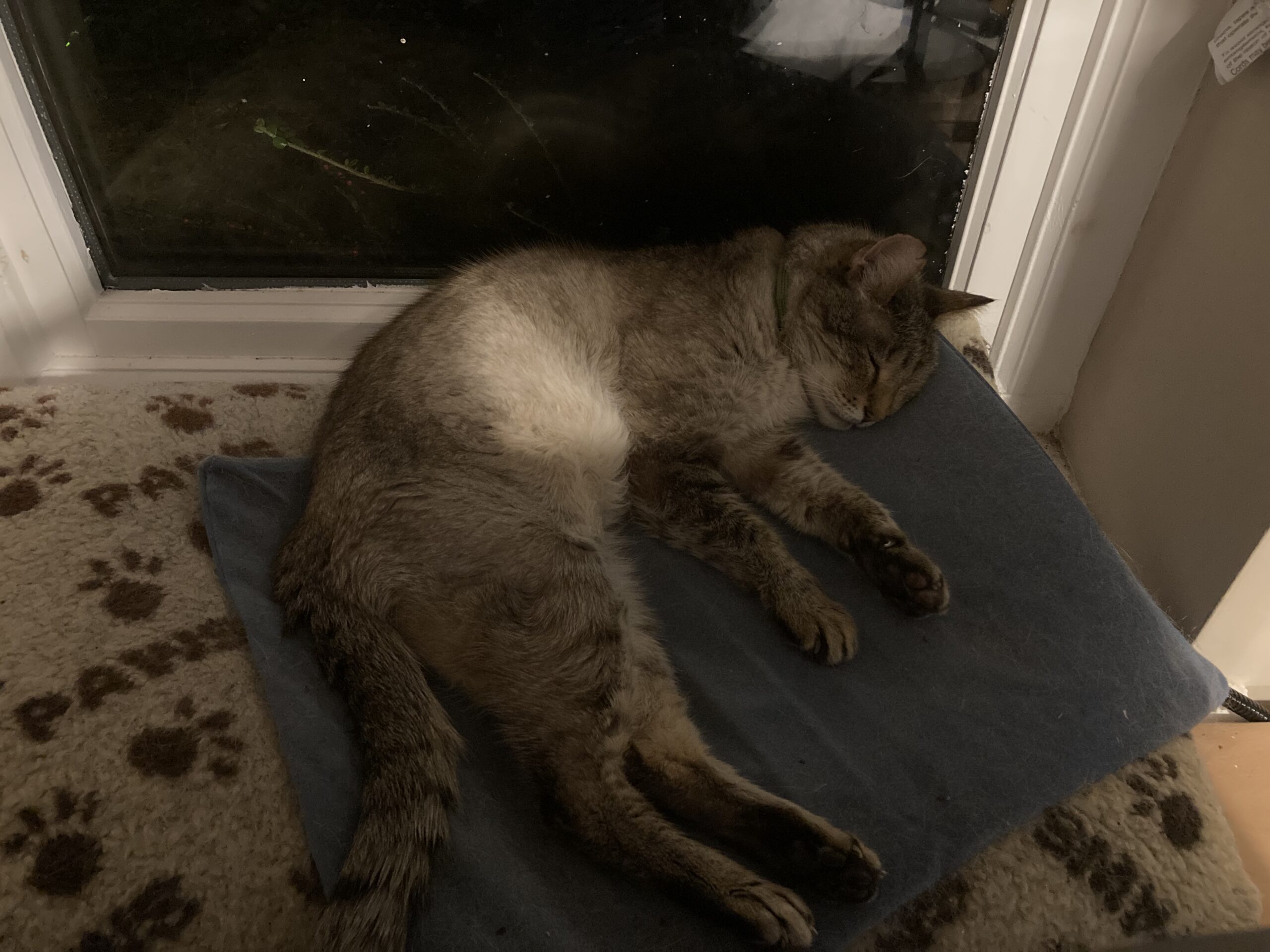 It has been three years since we lost his twin brother Schrodi to cancer, and we had the courage to have him put to sleep when it became apparent that he was suffering. I have seen too many people (all of whom love animals very much), keep an animal friend (I won’t say pet, because T&S were much more than pets to R and I) for longer than is kind.