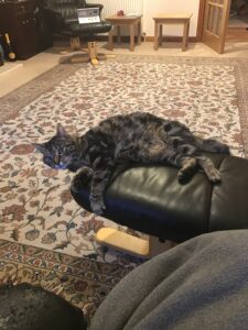 She is a friendly little thing and seems quite at home, but she is very small – only about 3.5kg as against T&S who both weighed over 5kg.