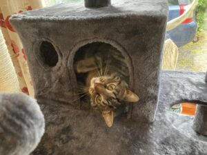 When we opened the bedroom door this morning, Saphy was sitting looking at us. She seems a bit nervous but quickly warmed to us and came through to the lounge.