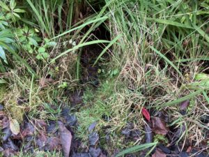 We found this wildlife hole on our way back from our walk. What could have made it?