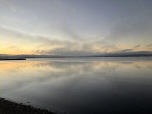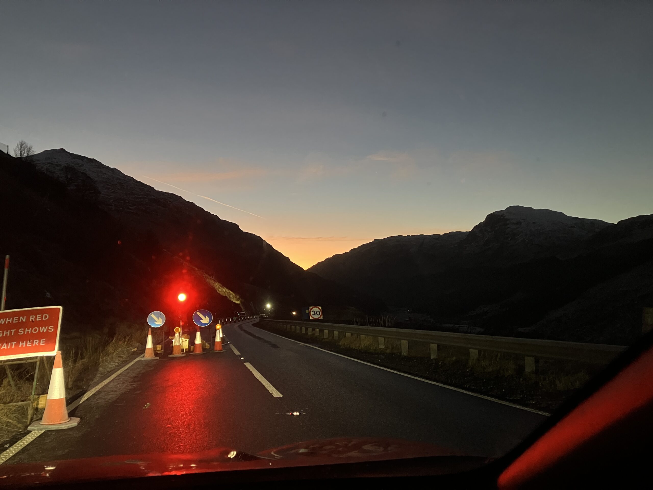It was spectacularly beautiful all along the road. We took this picture when stopped at traffic lights, but it doesn’t do it justice.