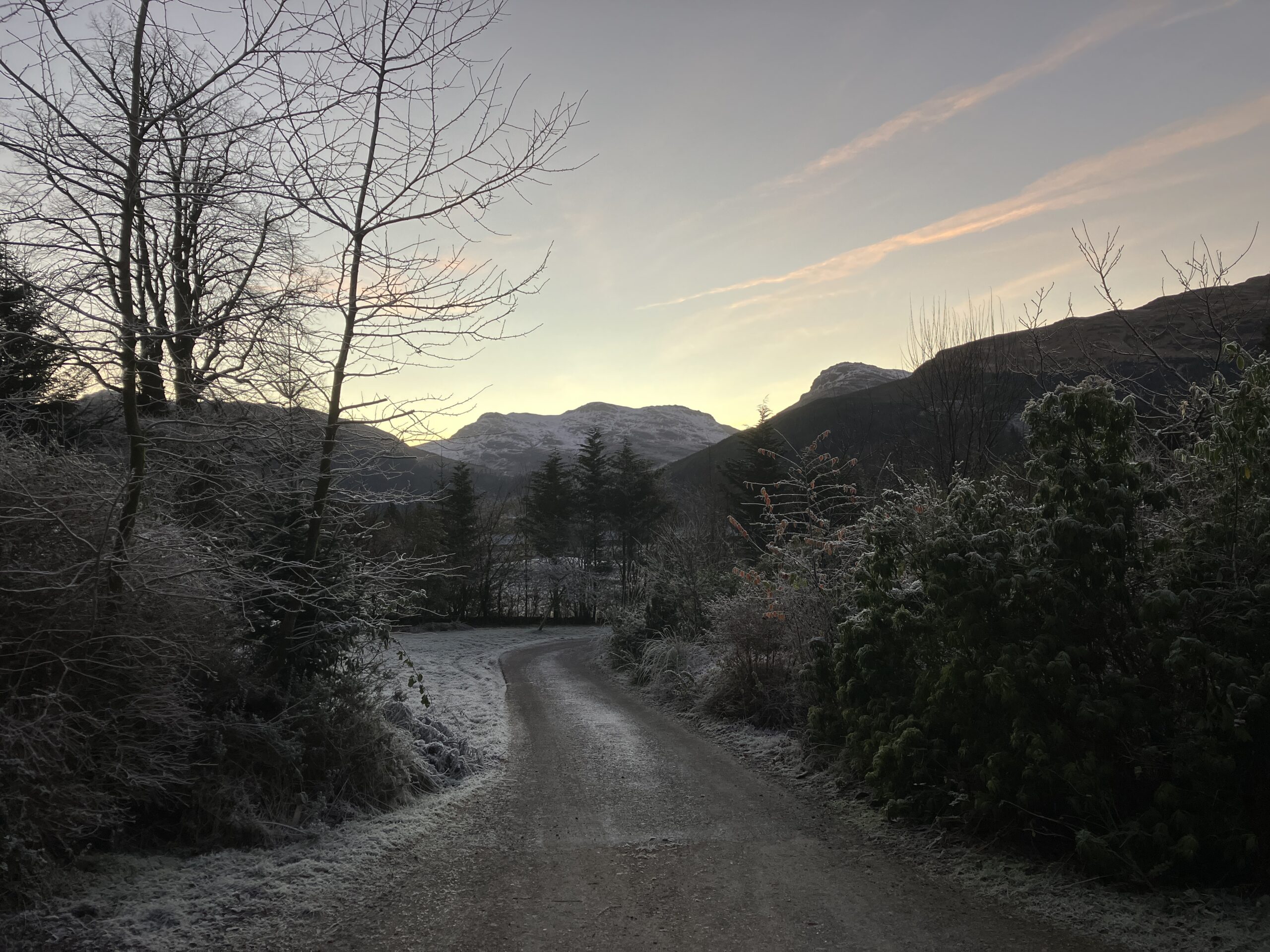 It was -5C this morning early when we set out for Helensburgh to get the car serviced and go to the dentist. This was our driveway at 7:30