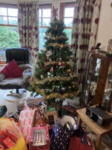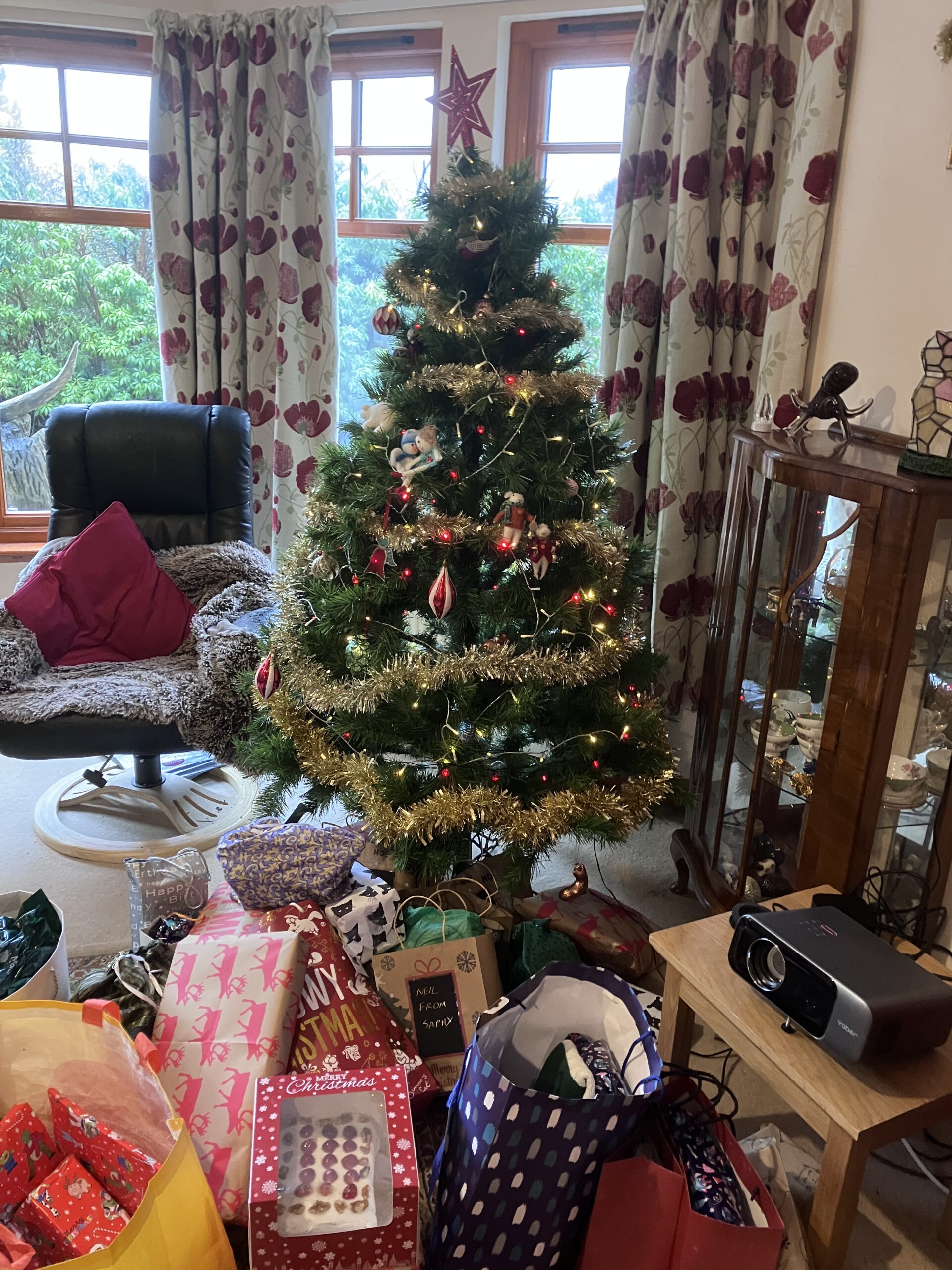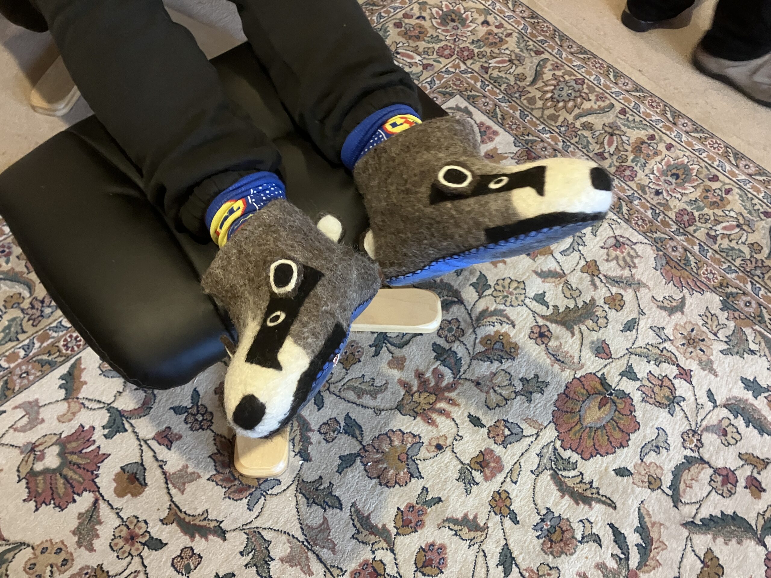 These were J’s feet in his Christmas Lidl socks and badger slippers.