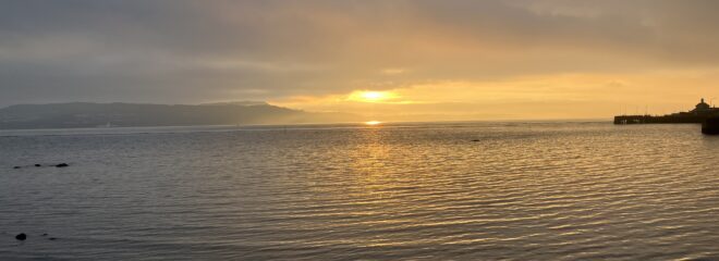 R had to take poor little Saphy to the vet in Dunoon this morning. He went for a walk along the front while she was having her X-Ray and saw this lovely sunrise.