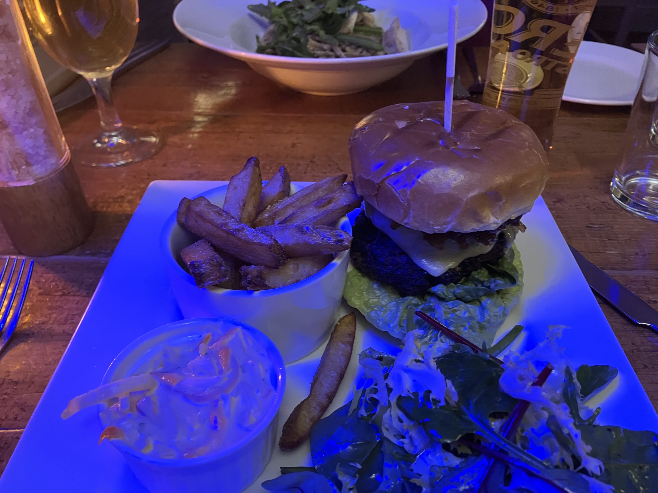 Possibly most importantly – this was the view of my Highland Burger (venison and haggis) at the Fig and Thistle