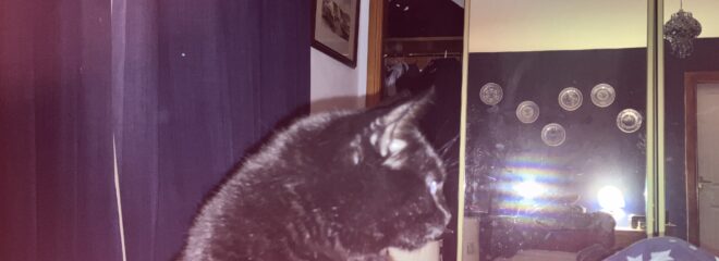 After half an hour of it, I realized I would have to get up and investigate. Carefully putting a dressing gown on (we have a webcam in the hall and I have more than once been caught on it in the nude) I went out into the hall. Saphy was sitting on her own with no sign of the other two cats, or the mouse for that matter. Together we walked all around the house looking for it. My intentions were to catch it and let it go. Saphy’s were not as benign.