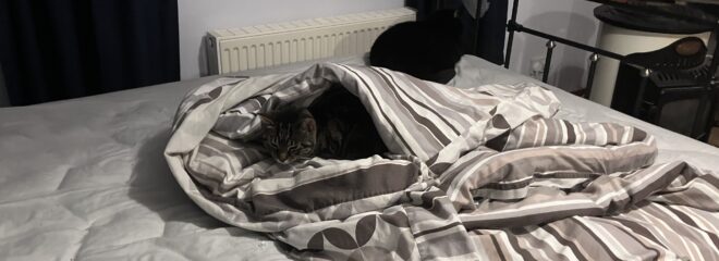 J and I were actually doing the building, and all went very well. We had it perfectly built and ready to go when we came to putting the mattress on – the final stage. It was huge and heavy, so exactly following the instructions, we lifted it on to the bed frame, and using the supplied tool, cut along the join of the plastic wrapper it was in to open it. This was vacuum packed, and we were expecting it to expand itself quite suddenly. What the instructions did not indicate in any way was that it would suddenly spring out like a striking snake. Luckily I was not right behind it, but along side, but even so it knocked me right to the floor and hit the foot end of the bedstead so hard that it broke it off and actually warped the metal struts attaching the foot of the bed to the rest of it. Luckily no harm was done to me – only the bed itself.