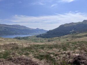 We skirted past the big (eyesore) barn, over the Drymsynie Hydro dam and round in a huge loop. Apart from one family swimming at the dam we saw not another soul. There were some fantastic views of the loch.