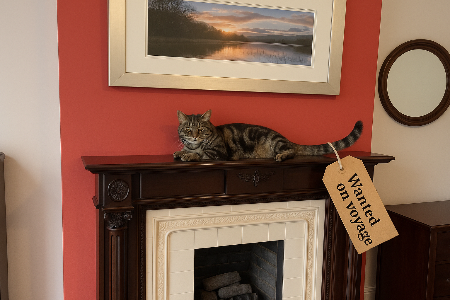 Now all the ornaments are packed, Saphy has discovered the mantlepiece, and like everything else in the house she now has a packing label.