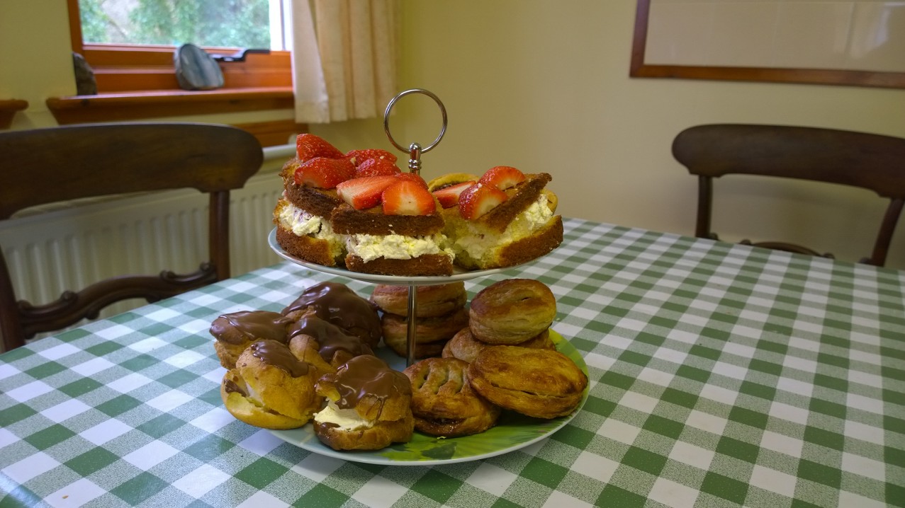 I tried an experiment for my Dad’s (84th) birthday and made a traditional Scottish ‘High Tea’. For non-natives – this is a sort of combination between afternoon tea and dinner. You have a simple but filling cooked dish, followed by a variety of baked things (largely of the sweet variety). It is eaten about 6pm instead of (you couldn’t do as well as!) tea and dinner.