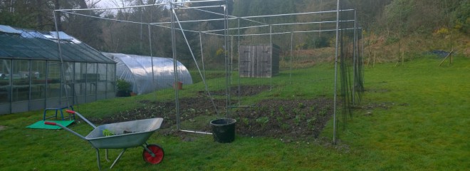 Well that is the vegetable plots dug and the deer fencing up around them.