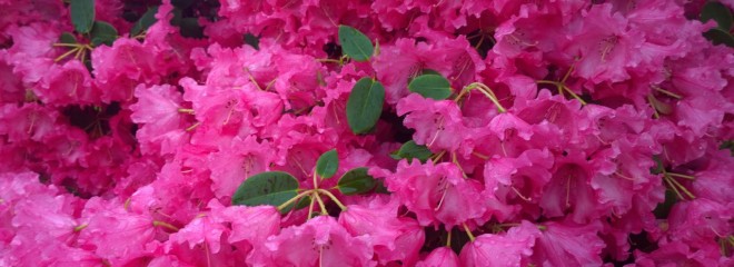 I’ve never seen anything like the rhododendrons (I’m glad IE knew how to spell that because I didn’t) in Lochgoilhead. There is everything from enormous tree sized ones in the Arboretum to tiny delicate ones no bigger than a house plant. The colours of them are stupendous, from purple to pink to cerise to cream to yellow to white – and the flowers so totally cover the plant on some of them that you can’t see even a scrap of greenery.