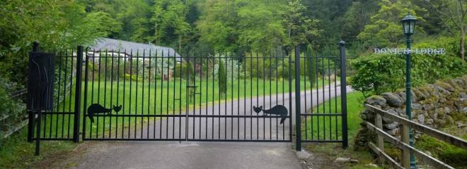 Yesterday we acquired some gates for our garden. We’ve thought since we moved in that the driveway looked oddly incomplete without something as a demarcation between the garden and the track. Also there was the incident of the ‘Donich three’ (our repeat sheep visitors) and a large dog which we briefly saw on the shedcam the other night.