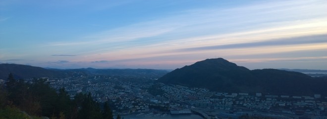 Last night I noticed that there was a scenic funicular railway running from the centre of Bergen right up to the top of the (high) range of hills behind the city. So after work today I thought I would have a little stroll to the station at the bottom, take the train to the top and have a leisurely walk back down (perhaps with an ice cream).