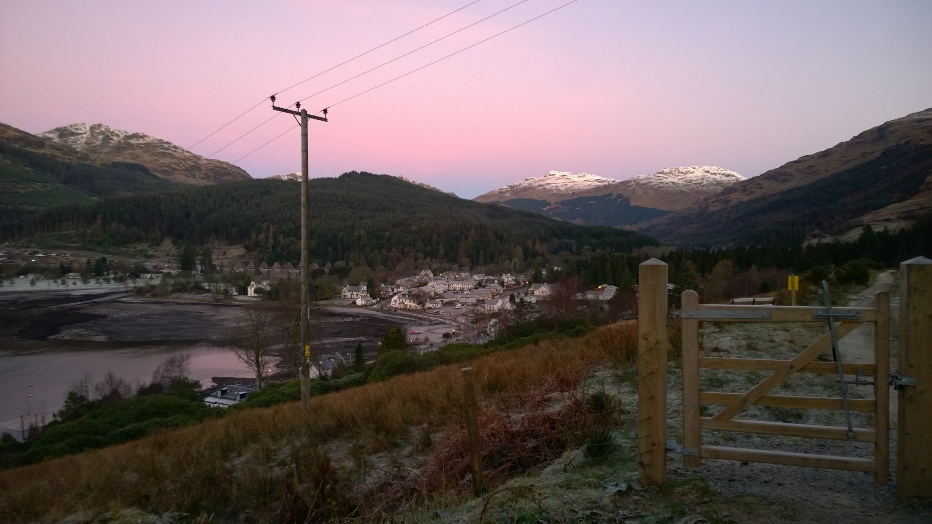 We got to Corran around 10:30am and ate our ‘lunch’ – not sitting on the picnic bench as it was white with frost. I took a short video of the lochan, but my hands were so cold I could hardly manipulate the camera and we quickly started walking back.