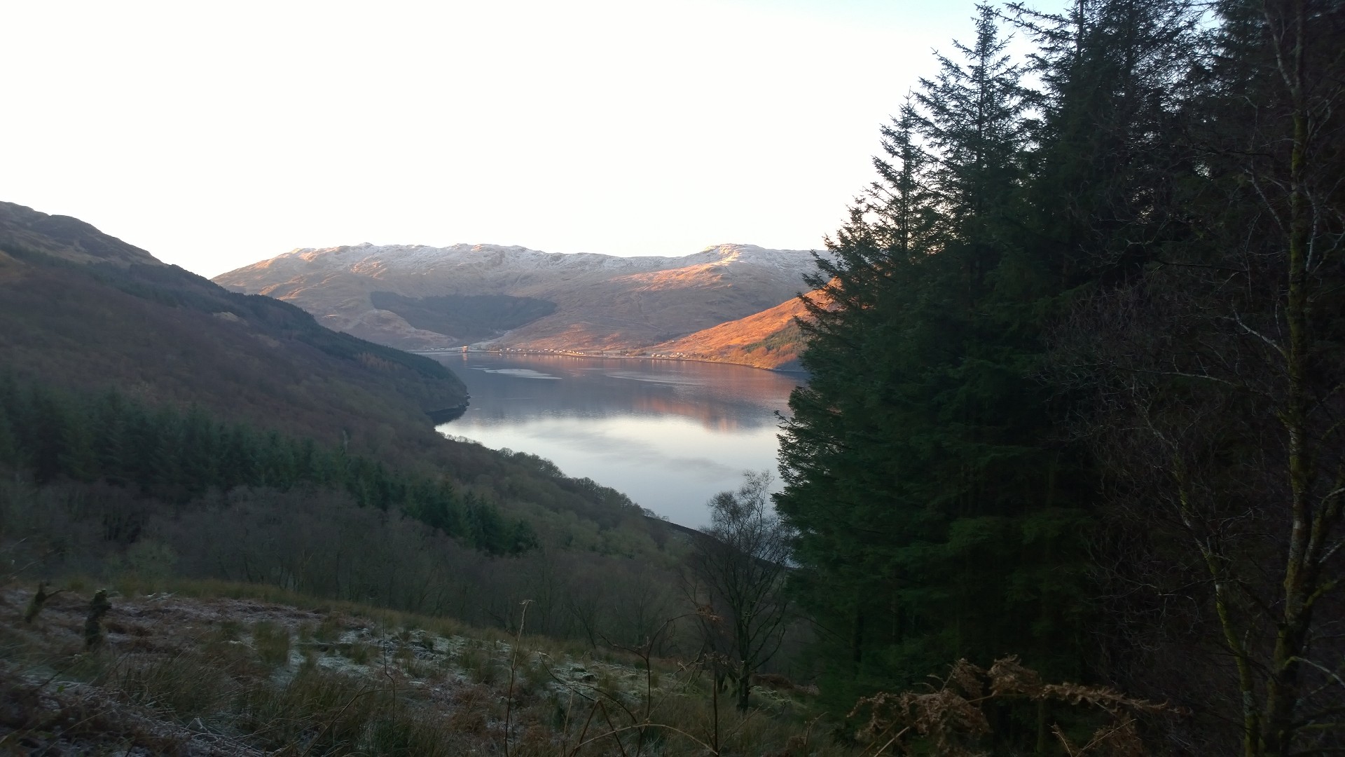 We had thought the weather would be good today, so last night I baked a loaf of bread for sandwiches, and we got up at 7am today so as to be on our way as soon as it got light. We were going to walk to Corran Lochan at the end of the Loch Goil peninsular – we’ve done this one a few times before, but never at the height of winter because it is a long walk (around five hours) and last year we never set off early enough.