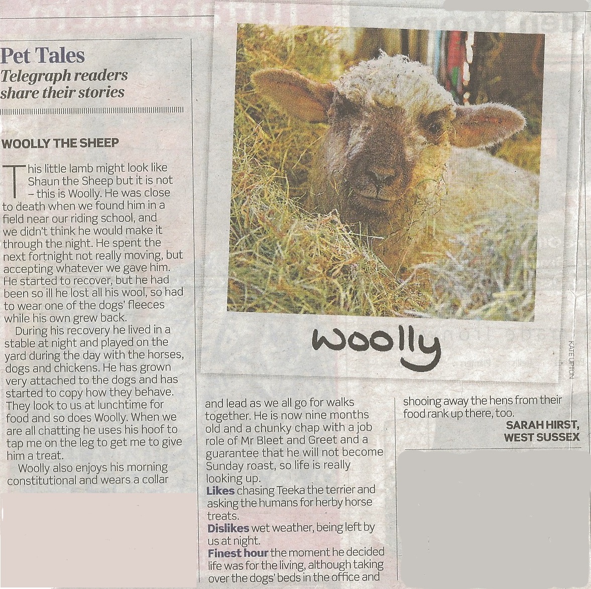 The reason for us both liking this is that when I was a child we had a pet sheep. She actually belonged to the farm next door, but had been brought up on a bottle, was really tame, and thought she was still a lamb. She was blind in one eye and deaf in one ear so she would have to turn her head at an odd angle to look at you.