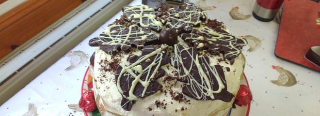 Then I forgot to bring a torch and had to get R to come and meet me in case I fell in the Donich on the way home. R did get a slice of the cake brought home for him as a reward though.