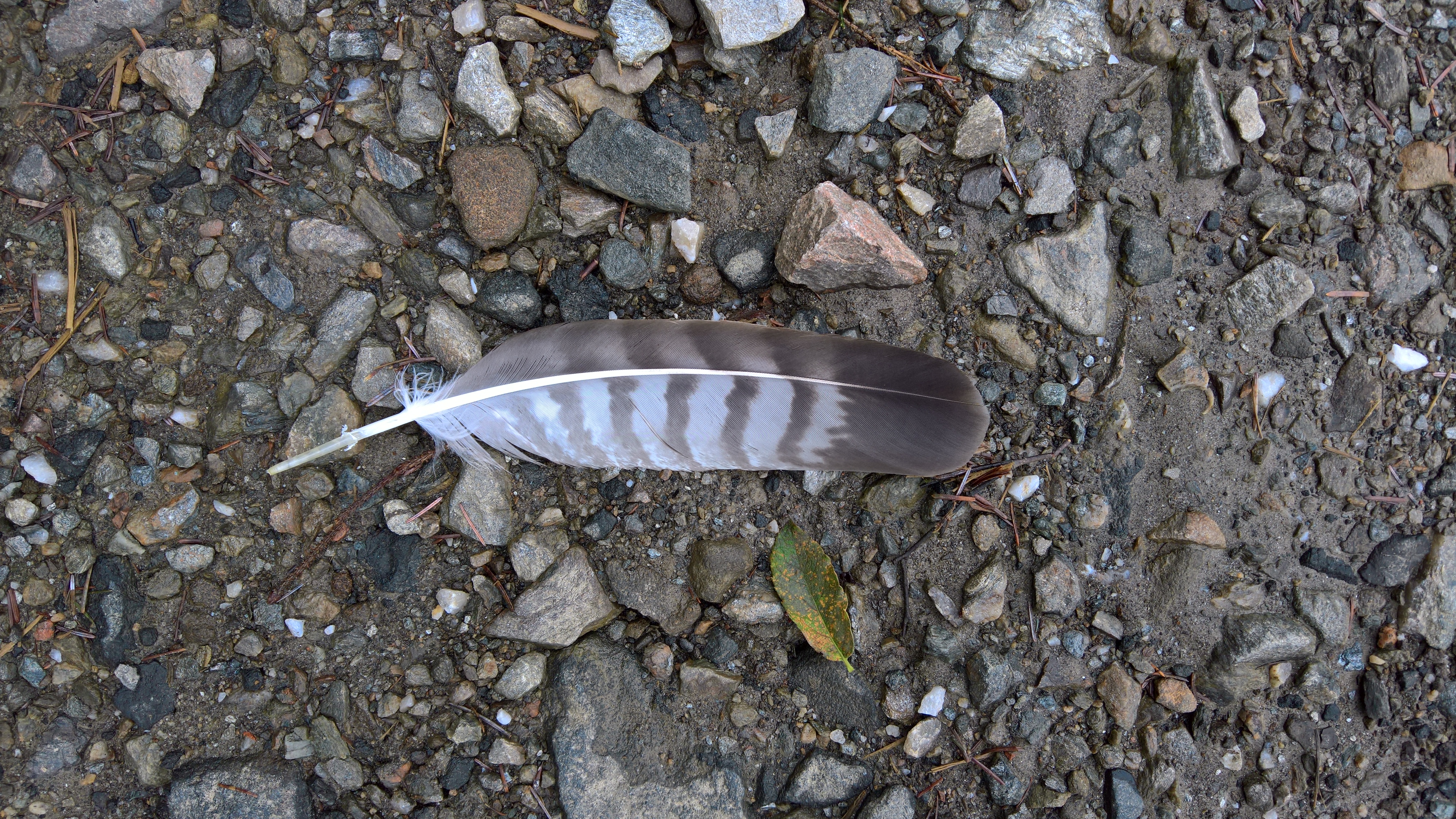 On the way back we saw a huge buzzard which had left one of its feathers on the path.